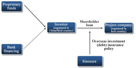 It is a product SINOSURE offers to companies or financial institutions encouraging Chinese companies to grant shareholder loans for their overseas investment projects, or encouraging financial institutions to provide loans or other financing recognized by SINOSURE forms of financing for overseas investment projects of Chinese companies, by assuming the loss of their claims on debts.