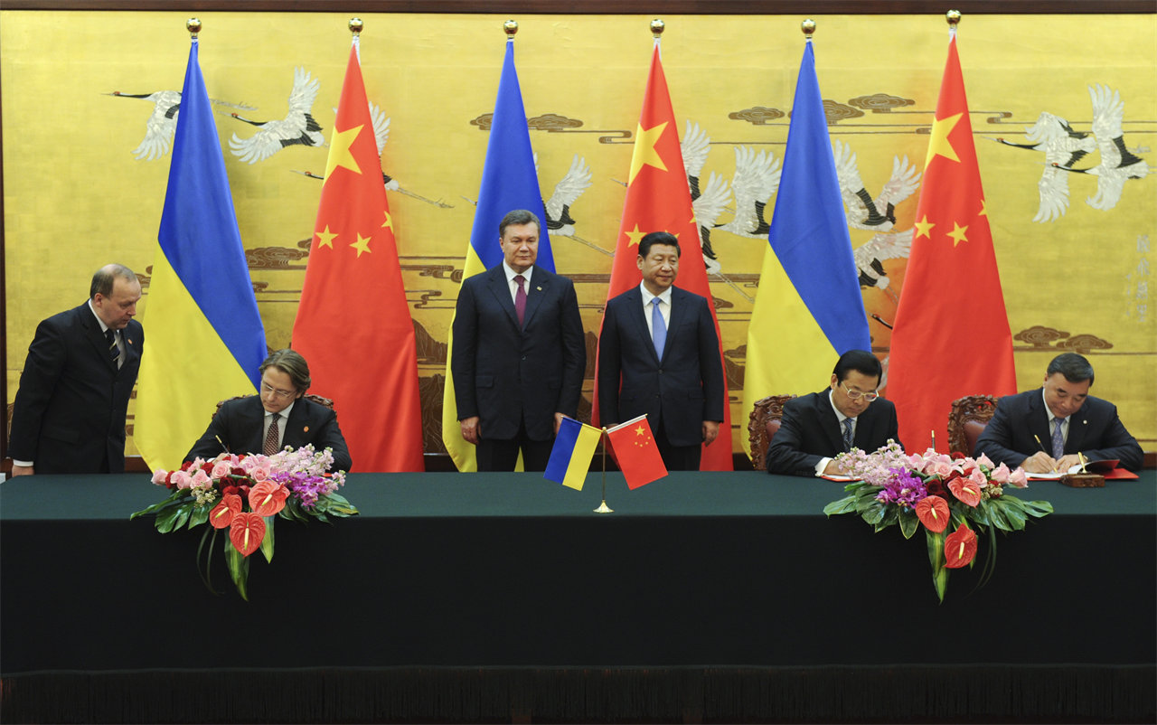 在两国领导人的见证下,中国信保与乌克兰GTE公司签署协议(2013)