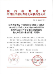 陕西省商务厅、中国信保陕西分公司联合印发《关于发挥出口信用保险作用全力支持外贸企业应对疫情影响稳定外贸增长十条措施的通知》