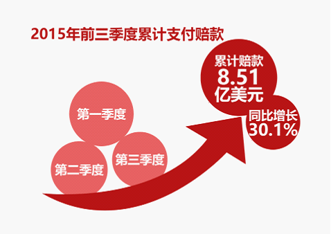 据统计,中国信保成立以来,及时高效地履行保险的经济补偿职能,累计向近9000家企业和银行支付赔款71.4亿美元。其中2011-20159月,中国信保累计支付赔款53.47亿美元,近五年年均增长27.9%