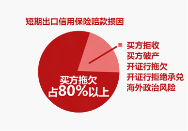 中国信保的数据显示,今年以来投保企业的出险致损原因主要包括:买方拖欠、买方拒收、买方破产、开证行拖欠、开证行拒绝承兑,以及海外政治风险等,其中买方拖欠占到短期出口信用保险损因的80%以上,企业在拓展海外市场时应当充分认识并防范上述商业风险和政治风险。