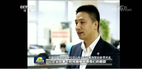 (同期声)中国出口信用保险公司山东分公司威海营业部总经理李术龙:“有一些需要正本的,我们可能先让企业提供一些复印件、传真件,我们就优先进行办理,让企业在第一时间,能够获得我们的赔款。”