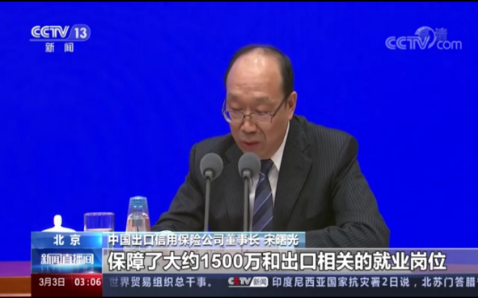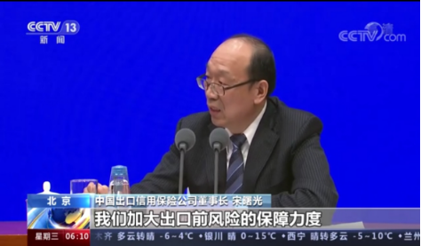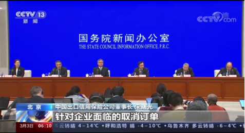 3月2日,中国信保宋曙光董事长受邀陪同中国银行保险监督管理委员会主席郭树清参加国务院新闻办公室举行的新闻发布会,并答记者问。中央电视台国际频道等媒体对新闻发布会进行了直播。发布会上,宋曙光董事长就稳外贸等社会关注的话题回答了记者提问,引起了媒体广泛关注。