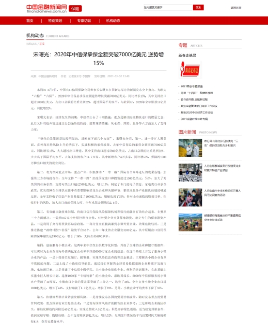 《金融时报》:宋曙光:2020年中信保承保金额突破7000亿美元 逆势增15%