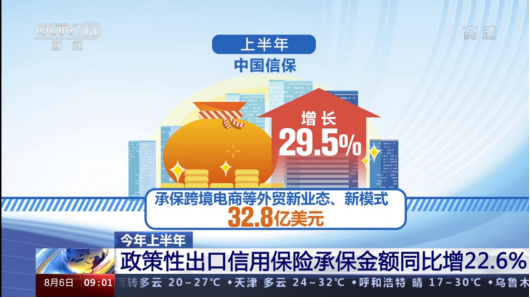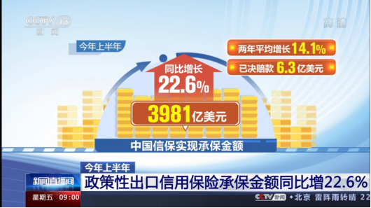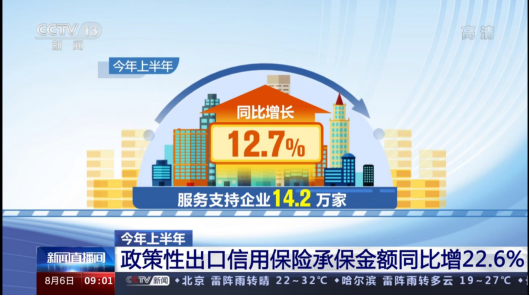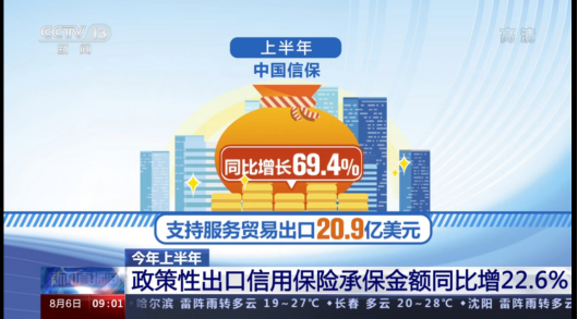 央视《新闻直播间》:政策性出口信用保险承保金额同比增长22.6%