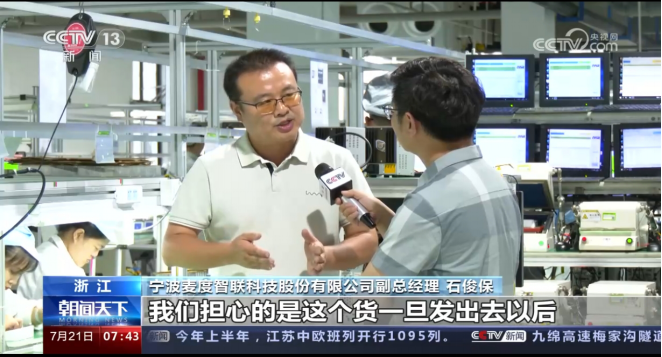 (同期声):宁波麦度智联科技股份有限公司副总经理石俊保:国内业务这块比外贸而言,这个回款周期会更长,我们担心的是这个货一旦发出去以后,我的资金的回款得不到有效的保障,这样的话就我们不敢一下子接更大的一些国内订单。
