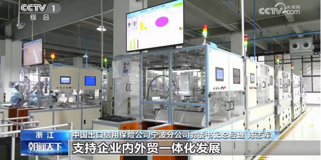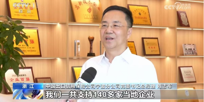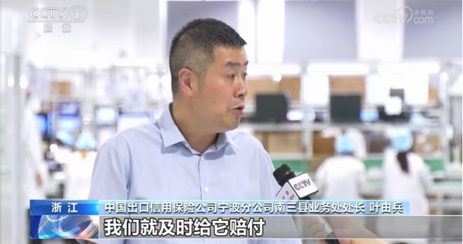 (同期声):中国出口信用保险公司宁波分公司党委书记总经理陈志军:今年上半年,我们一共支持140多家当地企业拓展国内市场,国内贸易信用保险总承保金额达到了74亿元人民币,帮助企业有效防范信用风险,支持企业内外贸一体化发展。