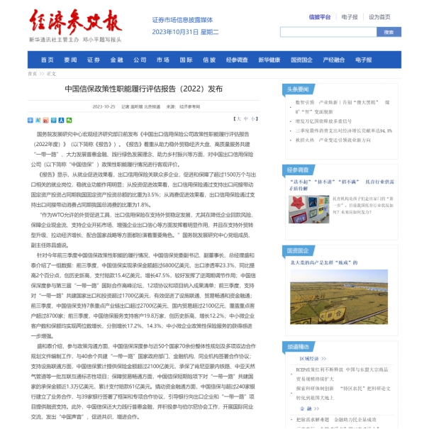 《经济参考报》:中国信保政策性职能履行评估报告(2022)发布