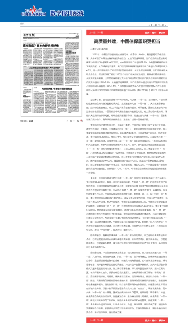 《国际商报》:高质量共建,中国信保履职更担当