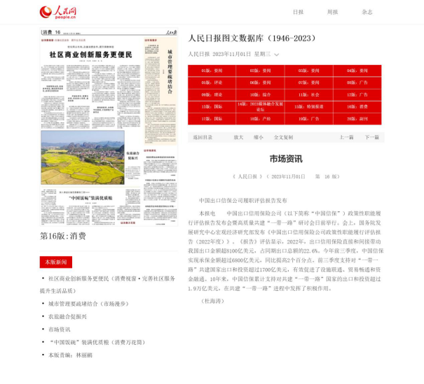 《人民日报》:中国出口信保公司履职评估报告发布