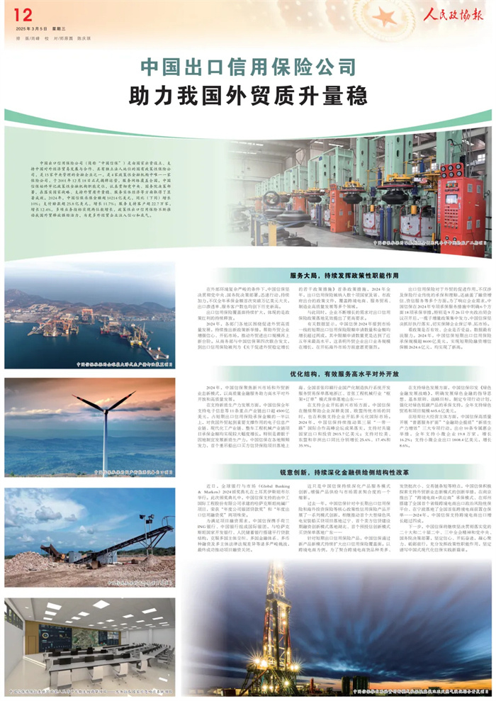 人民日报、人民政协报:中国出口信用保险公司助力推动外贸质升量稳