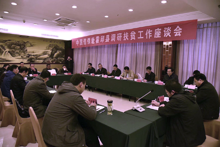 在与霍邱县委、县政府的扶贫工作座谈会上,霍邱县委书记刘胜汇报了霍邱县2017年脱贫攻坚工作进展情况,县教育局介绍了中国信保教育扶贫助学金落实情况,霍邱安粮公司介绍了有关工作进展情况,中国信保挂职干部汇报了挂职工作体会,相关乡镇负责人介绍了乡镇扶贫基本情况。