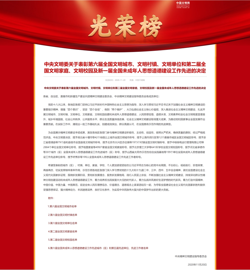 11月20日,全国精神文明建设工作表彰大会在北京举行,大会公布了第六届“全国文明单位”的表彰名单,中国信保浙江分公司榜上有名。全国文明单位是中央文明委授予创建单位的最高荣誉。近年来,中国信保浙江分公司扎实推进文明单位创建工作,取得了可喜成效。此次中国信保浙江分公司荣获第六届“全国文明单位”是对其精神文明建设工作的充分肯定,体现了中国信保在推进精神文明建设方面取得的积极成果。中国信保将以此为新的起点,继续加强精神文明建设,深化文明单位创建工作,努力为推动社会主义精神文明建设、全面建设社会主义现代化国家作出更大贡献。
