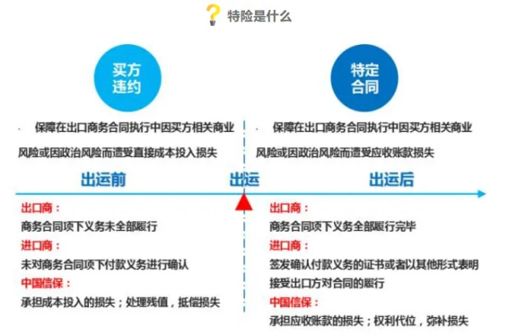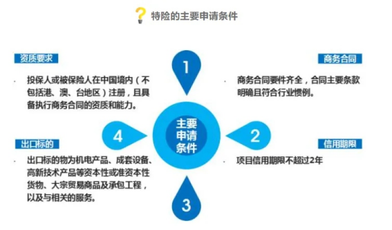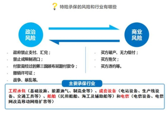特险,即特定合同保险,是中国信保向中国出口企业提供的、承担因政治风险和商业风险导致的商务合同项下应收款债权和成本投入损失的短期出口信用保险产品,商务合同信用期限不超过2年,重点支持我国成套设备与机电产品出口、对外工程承包等行业。